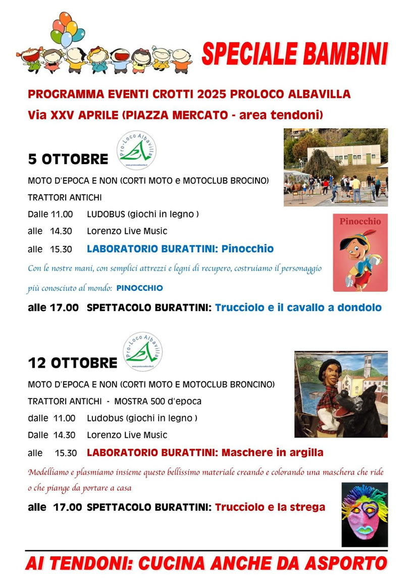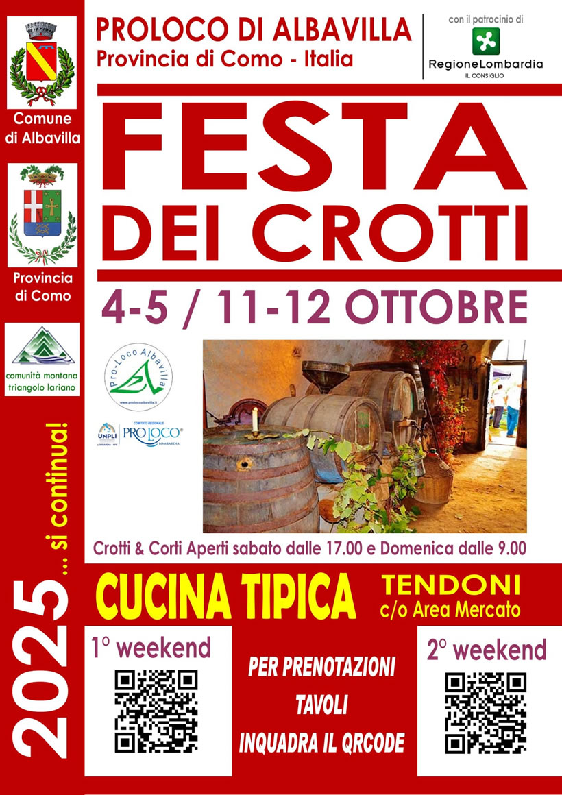 Anche quest’anno, Pro Loco Albavilla organizza la manifestazione Festa dei Crotti con l'intento e l'augurio di richiamare in paese migliaia di visitatori.