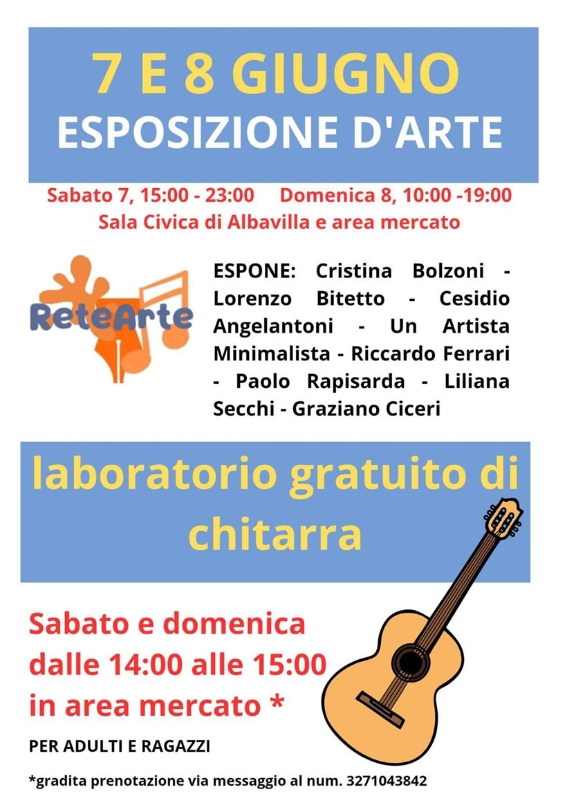 Nei giorni di sabato e domenica: esposizione d'arte e laboratorio gratuito di chitarra.